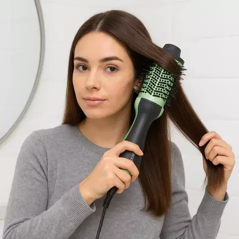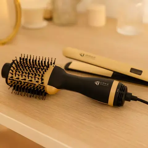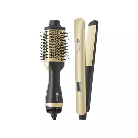 Lográ un cabello liso, brillante y sin frizz en minutos con este combo completo de planchita y cepillo secador. Dos productos diseñados para darte resultados de peluquería desde la comodidad de tu casa.